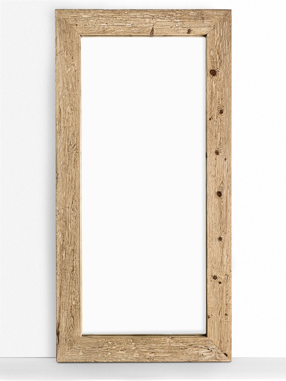El Espejo Ewan de gran formato (120x240 cm) se destaca por su marco robusto y texturizado, perfecto para incorporar un toque rústico y natural a espacios amplios. Fabricado con madera recuperada, el marco presenta nudos y vetas marcadas que le confieren un carácter auténtico y una historia única. Su diseño rectangular y vertical lo convierte en el elemento ideal para vestidores, recibidores o salones, aportando profundidad y luminosidad. Es un poderoso acento decorativo que nunca pasa de moda.