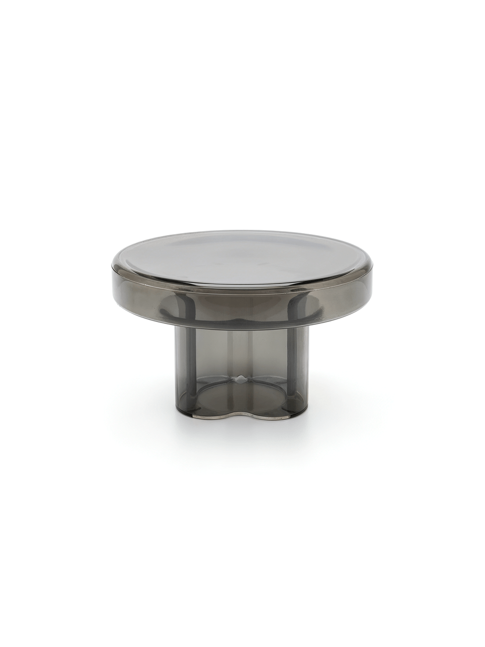 Nuestra mesa baja Grey Small destaca por su estructura de vidrio moderna, que aporta sofisticación y elegancia a cualquier entorno. Su superficie redonda y pata con detalle ovalado generan un efecto visual ligero y vibrante, ideal para espacios que buscan ambintes contemporaneos y joviales. Su altura baja la hace ideal, como mesa de centro baja o mesita de soporte decorativo. La iluminacion uniforme resalta la claridad del material junto con sos furmas suaves y redondeadas