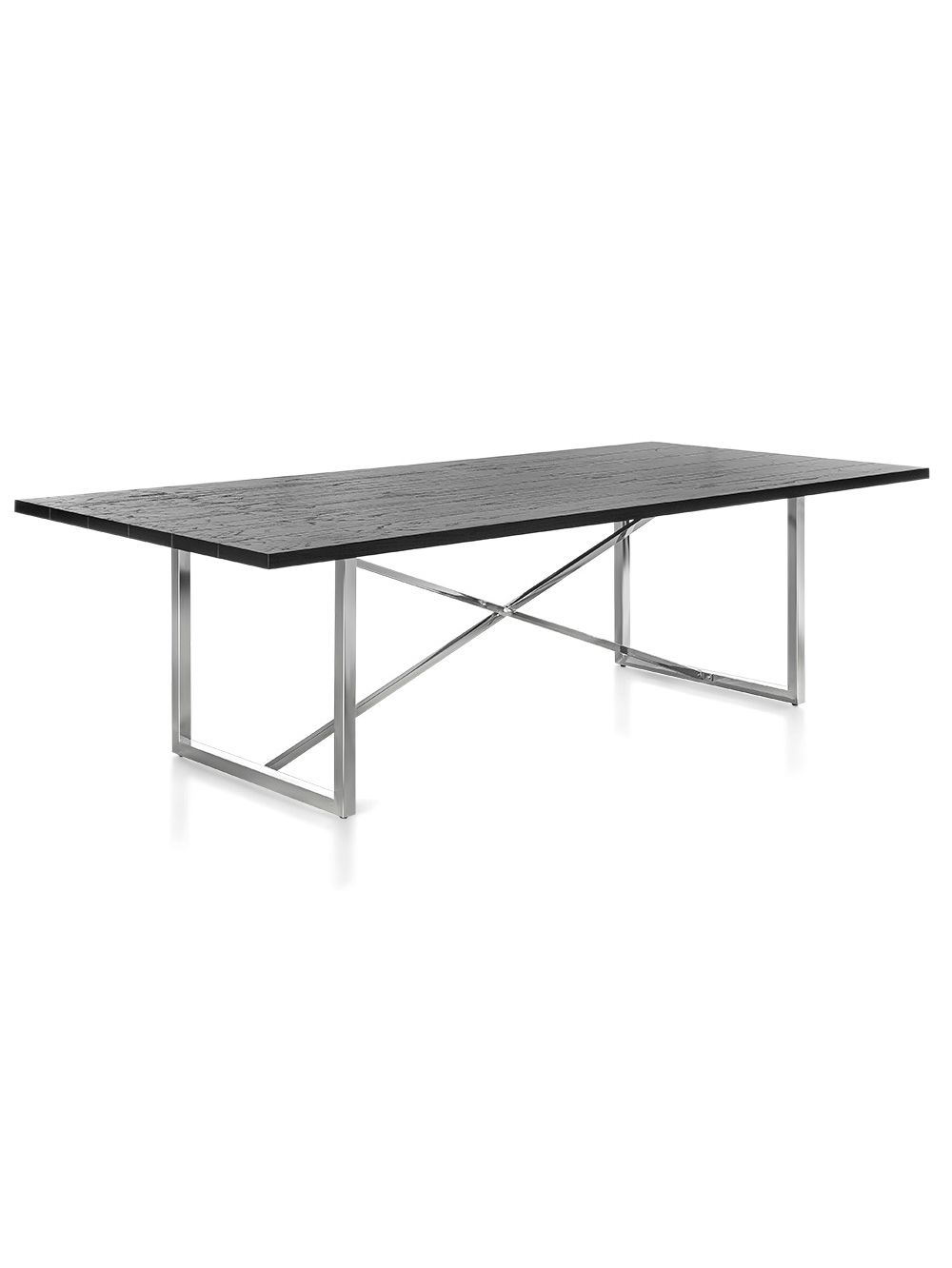 La Mesa de Comedor Illinois Chrome Black es la pieza definitiva para quienes buscan un diseño industrial-moderno de gran impacto. La tapa presenta un acabado en negro oscuro con una sutil textura que simula madera carbonizada, aportando profundidad y sofisticación. Su estructura de base es lo que la hace realmente espectacular. Este contraste entre la calidez oscura de la tapa y el brillo frío del metal cromado eleva el estilo de cualquier comedor, garantizando durabilidad. Es la combinación perfecta de arte y funcionalidad.