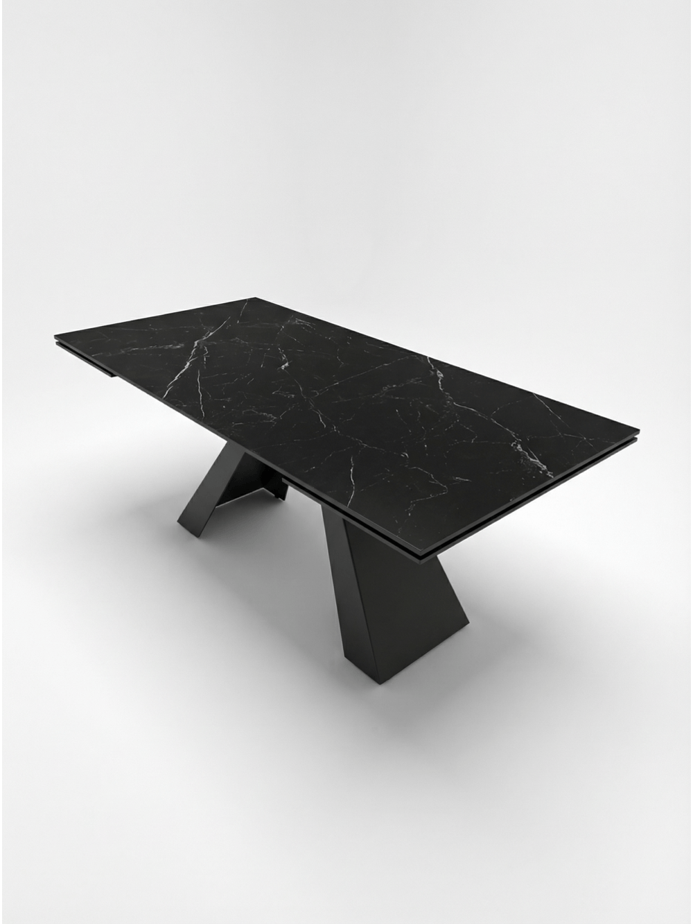 La Mesa de Comedor Extensible Melbourne Black es la máxima expresión del diseño contemporáneo y la funcionalidad. Su imponente superficie con acabado de mármol negro y vetas blancas aporta un carácter lujoso y sofisticado a cualquier espacio. Destaca por su robusta base geométrica en color negro, que ofrece una estabilidad excepcional con un estilo vanguardista. Gracias a su mecanismo extensible, se adapta perfectamente a reuniones sociales o cenas íntimas, combinando versatilidad con una estética premium que transforma el comedor en un ambiente de alta gama